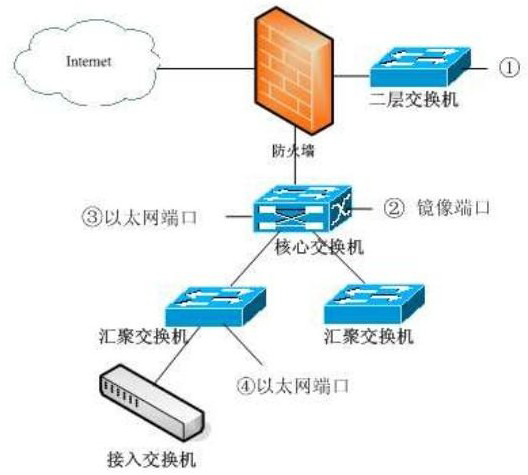 服务器的部署是网络规划的重要环节。某单位网络拓扑结构如下图所示,需要部署VOD 服务器、Web 服务器、邮件服务器,此外还需要部署流量监控服务器对单位内部网络流量进行监控。