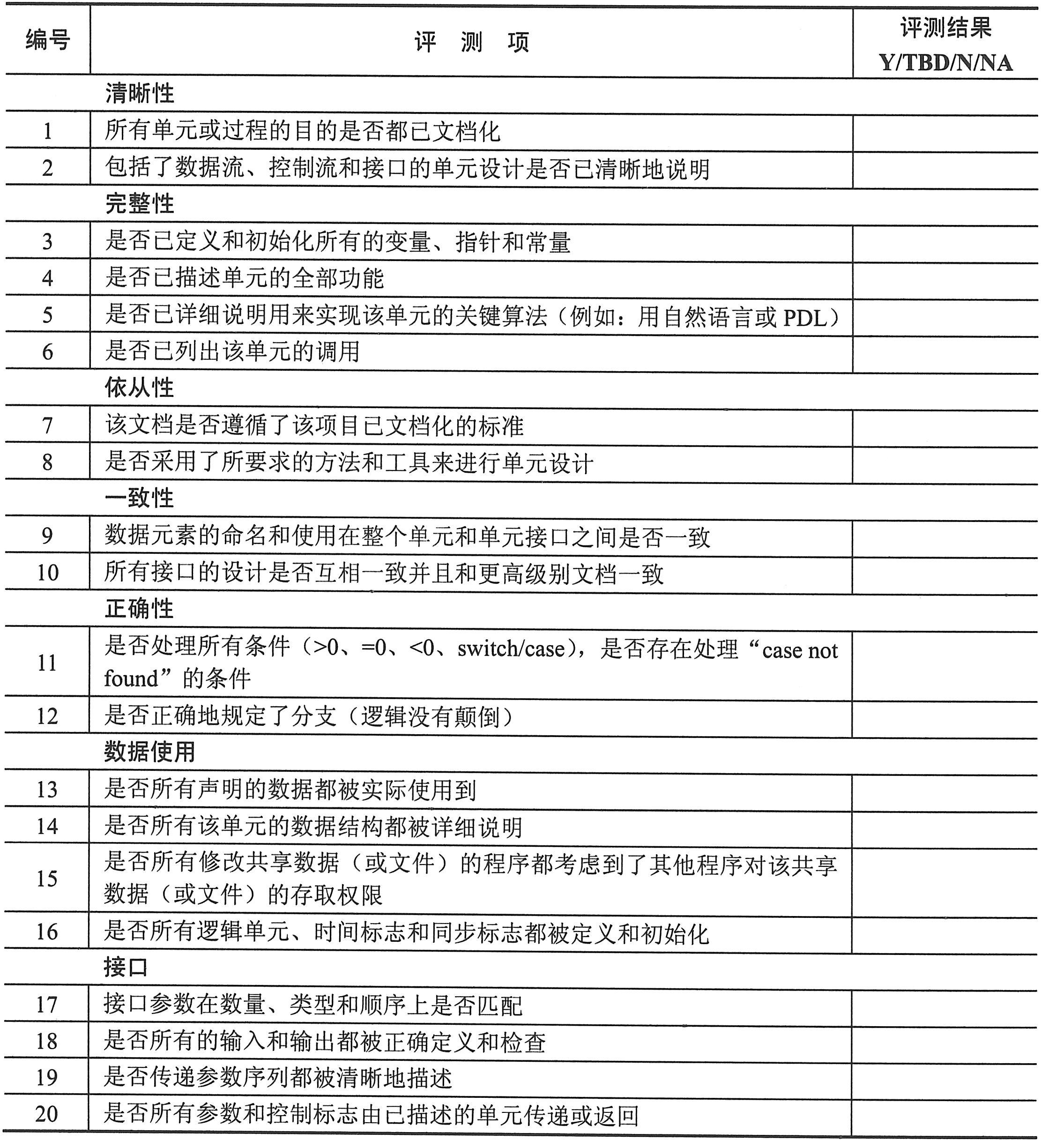 ⑩其他具体问题:对于文档、可测试性、设计过程等进行评估。