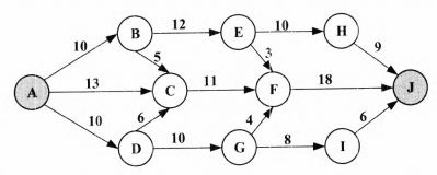 某软件项目的活动图如下图所示,其中顶点表示项目里程碑,连接顶点的边表示包含的活动,边上的数字表示活动的持续时间(天)。完成该项目的最短时间是(33)天。设活动A-E的最早开始时间为第1天,则活动B-C的最早和最晚开始时间分别为第(34)天。