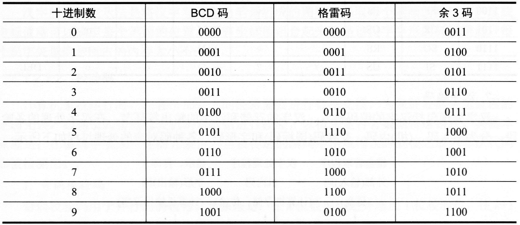 用4位二进制代码表示1位十进制数,称为十进制编码,简称BCD编码。常用的十进制数的编码有8421 BCD码、余3码、格雷码。