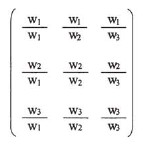 n*n矩阵可看作是n维空间中的线性变换,矩阵的特征向量经过线性变换后,只是乘以某个常数(特征值),因此,特征向量和特征值在应用中具有重要的作用。下面的矩阵(其中W1、W2、w3均为正整数)有特征向量(w1、 w2, w3),其对应的特征值为(65) 。