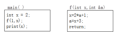 函数main()、f()的定义如下所示。调用函数f()时,第一个参数采用传值(call by value)方式,第二个参数采用传引用(call by reference)方式,main()执行后输出的值为( )。