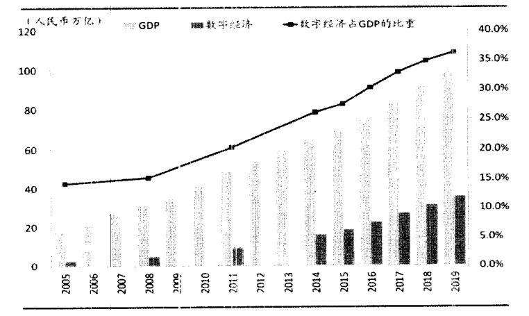 下图展示了我国十多年来GDP以及数字经济增长的趋势。根据此图,以下叙述不正确的是()。