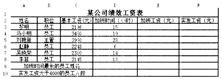 2.用IF函数计算加班工资,若加班时间小于10小时,则“加班工资=基本工资x20%”;若加班时间大于等于10小时且小于15小时,则“加班工资=基本工资x30%”;若加班时间大于等于15,则“加班工资=基本工资x40%”,并将计算结果填入对应单元格内;