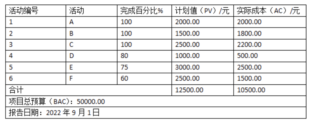 下表给出了某信息化建设项目到2022年9月1日为止的成本执行(绩效)数据。如果当前的成本偏差是非典型的,则完工估算(EAC)为()元。
