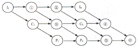。这四个作业各程序段并发执行的前驱图如下所示。图中①、②、③分别为(1),④、⑤、⑥分别为(2)。