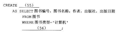 已知关系模式:图书(图书编号,图书类型,图书名称,作者,出版社,出版日期,ISBN),图书编号唯一识别一本图书。建立“计算机”类图书的视图Computer-BOOK, 并要求进行修改、插入操作时保证该视图只有计算机类的图书。实现上述要求的SQL语句如下: