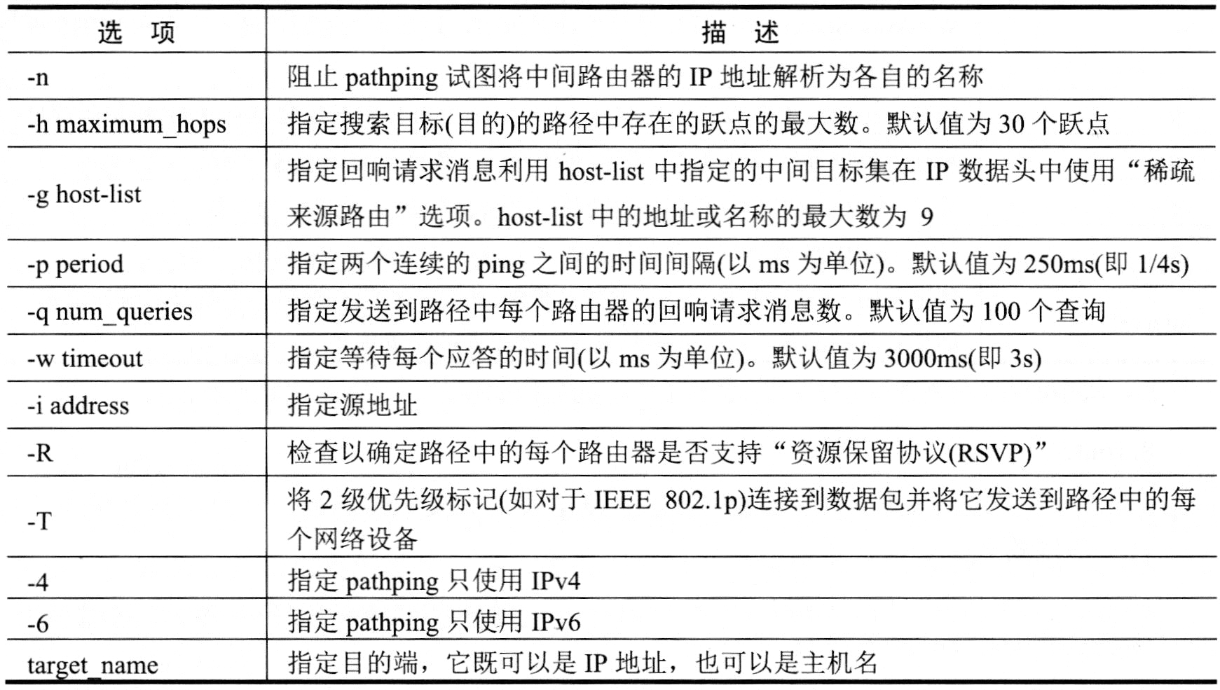 pathping的选项