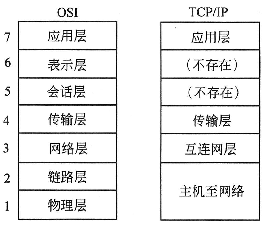常见的计算机网络体系结构,除了OSI结构外,还有TCP/IP结构,其模型如下图所示。