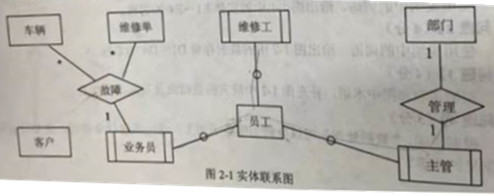 (3)员工信息包括:员工号、员工名、岗位、电话、家庭住址。其中,员工号唯一标识员工关系中的每一个元组。岗位有业务员、维修工、主管。业务员根据车辆的故障情况填写维修单。