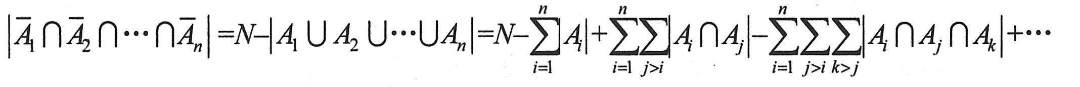 公式二:设A1A2,…,An是有限集合,且都是集合U的子集,N为集合U的元素个数,则