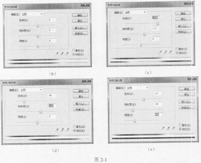 在Photoshop中打开一幅如图2-1(a)所示的树叶图像,然后执行“图像一调整一色相/饱和度”菜单项,显示如图2-1(b)所示的色相/饱和度窗口。