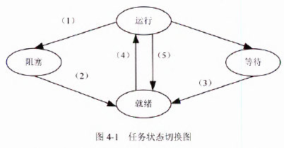 AUTOSAR中定义了应用任务有四种不同的状态,其状态之间的切换如图4-1所示。