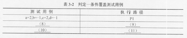 如果采用判定一条件覆盖法进行测试,测试用例表如表3-2所示 (用例不分顺序)。