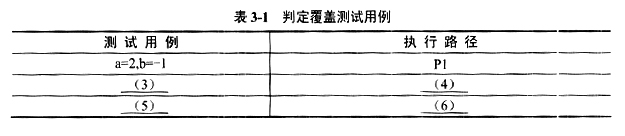 如果采用判定覆盖法进行测试,测试用例表如表3-1所示(用例不分顺序)。