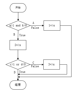 条件覆盖是设计测试用例,使每个判断中每个条件的可能取值至少满足一次,因此采用条件覆盖法进行测试,一般需要设计两组测试用例,如果第一组测试用例设计为:a=2,b=0,c=2,d=0,则另一组测试对应的路径为(7)。