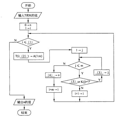 下面的流程图可在正文字符串T(1:L)中计算关键词字符串K(l:m)出现的次数(用n表示)。其中,L为字符串T的长度,m为字符串K的长度(m<L)„为便于模糊查找,关键词中的字符“?”可以匹配任意一个字符。