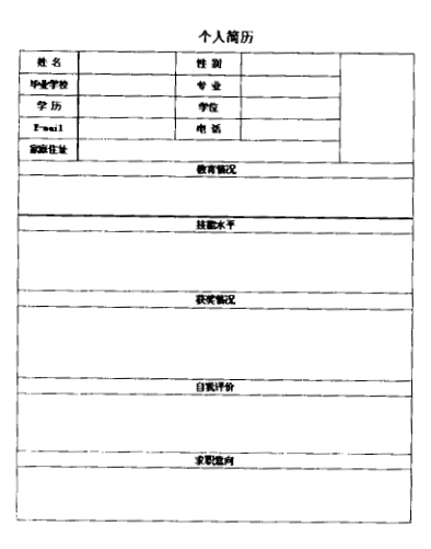 Word软件制作如图示的个人简历。按题目要求完成后,用Word的保存功能直接存盘。