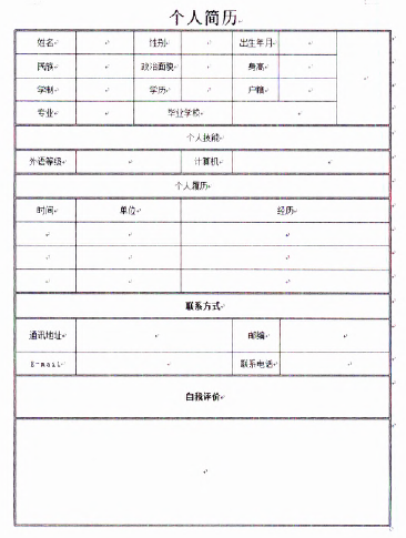 Word软件制作如图示的个人简历。按题目要求完成后,用Word的保存功能直接存盘。