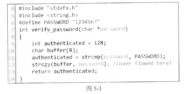 (1)请问图5-1的代码中第9行的变量authenticated保存在图5-2所示的哪个区域中?
