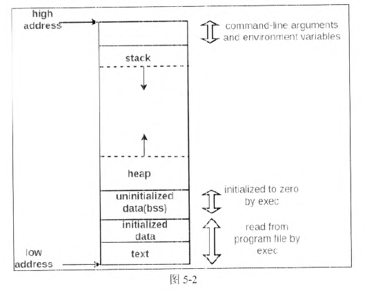 (3)在图5-2中的stack区域保存数据时,其地址增长方向是往高地址还是往低地址增加?
