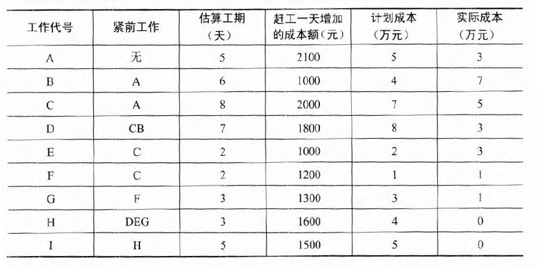 项目经理根据甲方要求估算了项目的工期和成本。项目进行到20天的时候,项目经理对项目进展情况进行了评估,得到各活动实际花费成本(如下表所示)。此时ABCDF已经完工,E仅完成了二分之一,G仅完成了三分之二,H尚为开工。