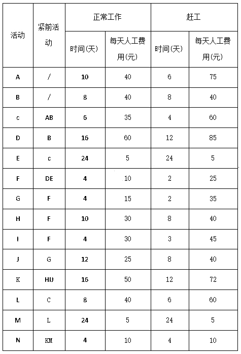 若要求该工程在70天内完工,为保证工程能在70天内完成,且人工费用最低,请按照案例表格中提供的时间和费用信息,写出哪些活动需要赶工,并计算赶工后增加的总人工费用。