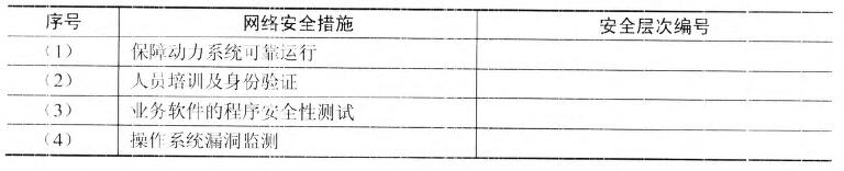 A单位根据信息安全工程高级保障体系框架提出了4项网络安全措施。请指明这些措施在信息安全工程高级保障体系框架中所对应的安全层次(将安全层次选项填写在答题纸对应表格内)。 A.管理安全 B.设施安全 C.运行安全