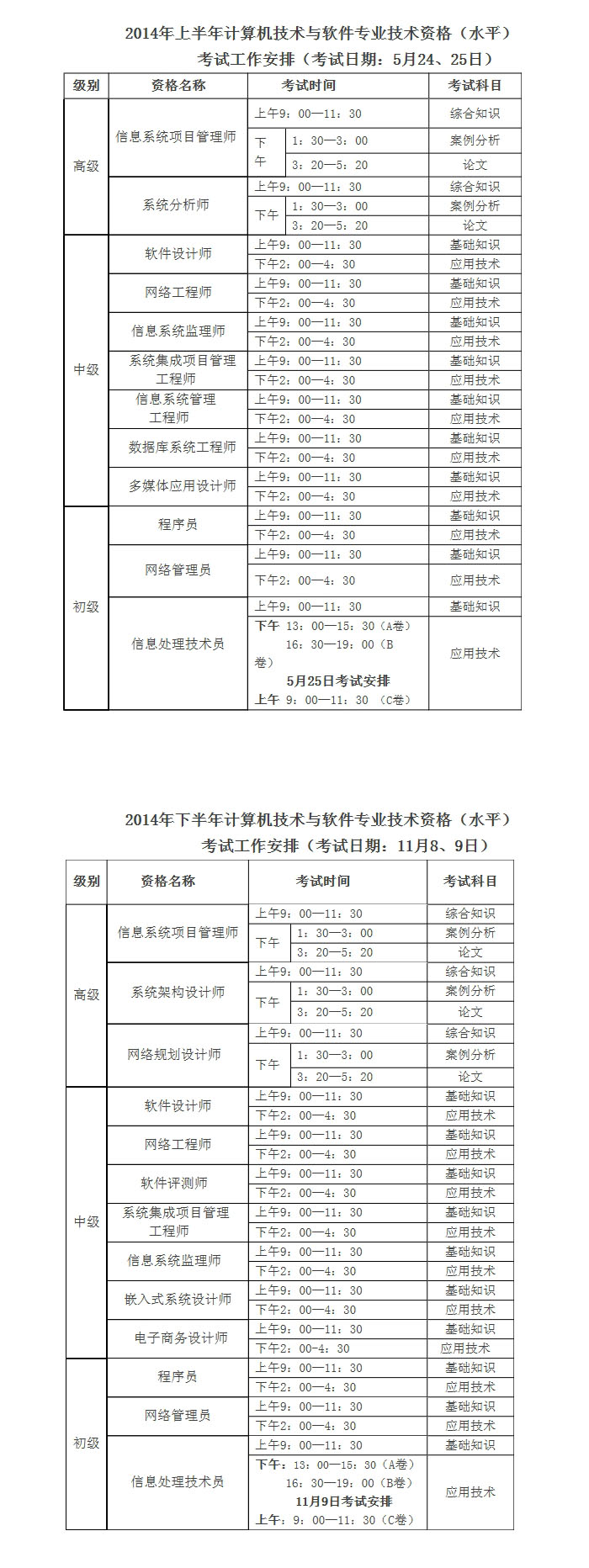 2014年度计算机技术与软件专业技术资格(水平)考试工作安排