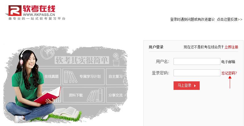 如您不慎忘记您在软考在线的密码,可在软考在线首页上方点击【登录】按钮,进入用户登录界面,点击“忘记密码?”。