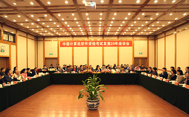 2011年10月28日,“中国计算机技术与软件专业技术资格(水平)考试发展20年座谈会”在北京举行。人力资源和社会保障部专业技术人员管理司副司长吴剑英、工业和信息化部人事教育司副巡视员刘素文等相关领导出席会议并致辞,原人力资源和社会保障部专业技术人员管理司司长刘宝英、部分离退休老干部和专家也应邀出席座谈会。参加会议的还有来自全国各省市计算机软件资格考试管理机构的负责人和部分考务工作人员,座谈会由工业和信息化部教育与考试中心主任徐玉彬主持。