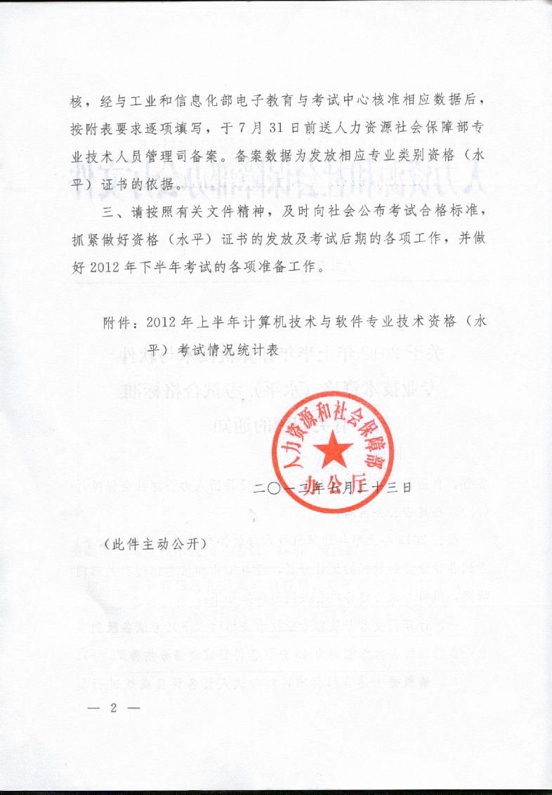 关于2012年上半年计算机技术与软件专业技术资格(水平)考试合格标准有关问题的通知