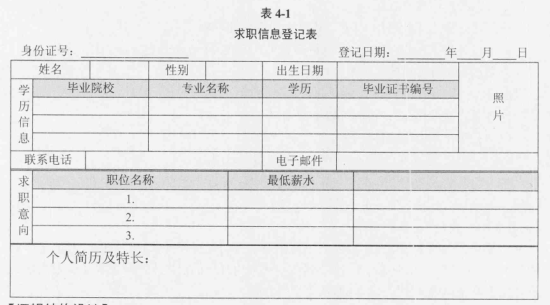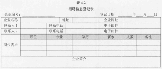 【说明】 某地人才交流中心为加强当地企业与求职人员的沟通,促进当地人力资源的合理配置,拟建立人才交流信息网。 【需求描述】 1.每位求职人员需填写《求职信息登记表》(如表4-1所示),并出示相关证件,经工作人员审核后录入求职人员信息。表中毕业证书编号为国家机关统一编码,编号具有唯一性。每个求职人员只能填写一部联系电话。 2.每家招聘企业需填写《招聘信息登记表》(如表4-2所示),并出示相关证明及复印件,经工作人员核实后录入招聘企业信息。表中企业编号由系统自动生成,每个联系人只能填写一部联系电话。 3.求职人员和招聘企业的基本信息会在系统长期保存,并分配给求职人员和招聘企业用于登录的用户名和密码。求职人员登录系统后可登记自己的从业经历、个人简历及特长,发布自己的求职意向信息;招聘企业的工作人员登录系统后可维护本企业的基本信息,发布本企业的岗位需求信息。 4.求职人员可通过人才交流信息网查询企业的招聘信息并进行线下联系;招聘企业的工作人员也可通过人才交流信息网查询相关的求职人员信息并进行线下联系。 5.求职人员入职后应惨改自己的就业状态(在岗/求职);招聘企业在发布需求岗位有人员到岗后也应该及时修改需求人数。
