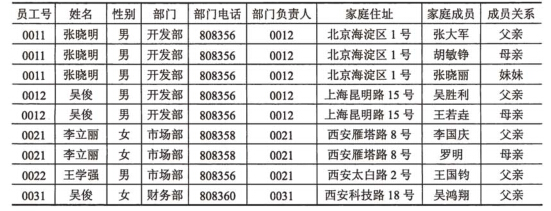 假设员工关系EMP (员工号,姓名,性别,部门,部门电话,部门负责人,家庭住址,家庭成员,成员关系)如下表所示。如果一个部门只能有一部电话和一位负责人,—个员工可以有多个家庭成员,那么关系EMP属于(31),且(32)问题:为了解决这一问题,应该将员工关系EMP分解为(33).
