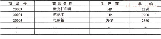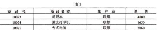 某超市的商品(商品号,商品名称,生产商,单价)和仓库(仓库号,地址,电话,商品号,库存量)两个基本关系如表1和表2所示。