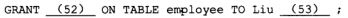 将表employee中name列的修改权限赋予用户Liu,并允许其将该权限授予他人,应使用的SQL语句为: