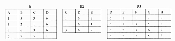 若进行R1R2运算,则结果集分别为(41)元关系,共有(42)个元组;若进行R2xσF<4(R3)运算,则结果集为(43)元关系,共有(44)个元组。
