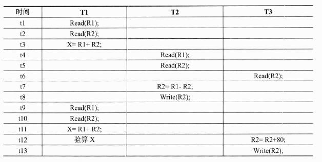 如上图(c)所示,事务T1对数据C修改之后,在t4时刻事务T2读取修改后的C值做处理,之后事务T1回滚,数据C恢复了原来的值,事务T2对C所做的处理是无效的,它读的是被丢掉的垃圾值。