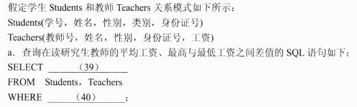 a.査询在读研究生教师的平均工资、最高与最低工资之间差值的SQL语句如下: