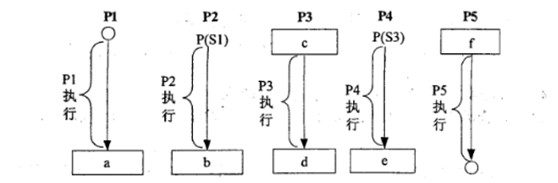 若用PV操作控制进程P1、P2、P3、P4和P5并发执行的过程,则需要设置5个信号量S1.S2.S3.S4和S5,且信号量S1~S5的初值都等于零。下图中a和b处应分别填写(25);c和d处应分别填写(26),e和f处应分别填写(27)。