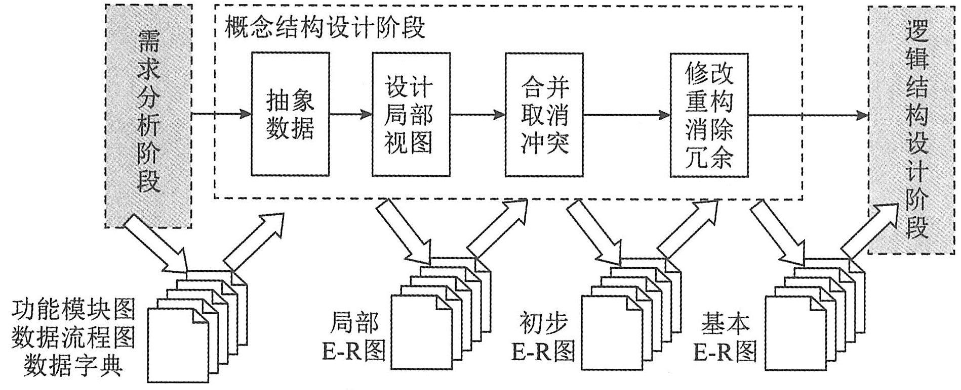 数据库概念结构设计阶段是在需求分析的基础上,依照需求分析中的信息要求,对用户信息加以分类、聚集和概括,建立信息模型,并依照选定的数据库管理系统软件,转换成为数据的逻辑结构,再依照软硬件环境,最终实现数据的合理存储。这一过程也称为数据建模。这一过程可分解为三个阶段:概念结构设计、逻辑结构设计和物理结构设计。
