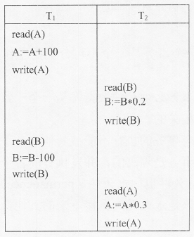 经过上述一系列交换后得到的是一个如下图(a)所示的串行调度S1。这也说明了调度S5等价于一个串行调度,所以是一个正确的调度。请思考为什么调度S4是一个错误的调度。