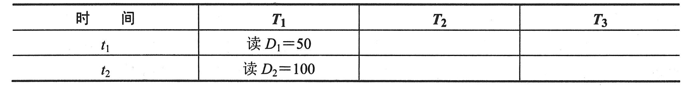 例如,假设某3个事务T1T2T3并发执行的过程如下表所示。
