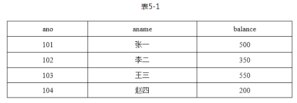 账户表:Account (ano, aname, balance),其中属性含义分别为:账户号码,账户名称和账户余额。