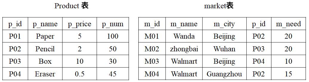 假设有两个数据库表,product 表和market 表,分别存放商品信息和市场需求信息。对SQL语句: selet * fom product, market where productp. id=markep.id的结果描述正确的是(42)。如果想从market表中移除m id为MO3的记录,语句(43)是正确的。如果要收回GRANT SELECT ON product to role_A WITH GRANT OPTION语句给role_A赋予的权限,使用语句(44)。早product表、market表初始数据不变的情况下,以下SQL语句返回的结果有(45)条记录。
