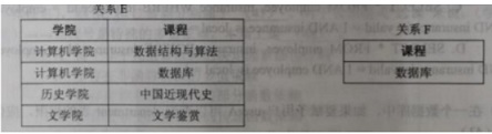 如下表所示,有两个关系E和F,若它们经过某一关系运算后的结果为{计算机学院},这一关系运算为( )。