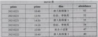 某电影院某日电影入座情况如下表所示。为调整场次,要统计2021年2月21日到场人数总数大于100的电影,可满足要求的SQL语句是( )。