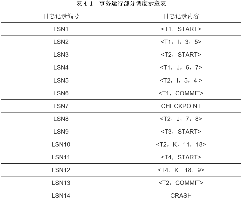 事务在运行过程中,系统把事务开始、事务结束(包括COMMIT和ROLLBACK),以及对数据库的插入、删除、修改等每一个操作作为一个登记记录存放到日志文件中。每个记录包括的主要内容有:执行操作的事务标识、操作类型、更新前数据的旧值(对插入操作而言此项为空值)、更新后的新值(对删除操作而言此项为空值)。登记的次序严格按并行事务操作执行的时间次序,同时遵循“先写日志文件”的规则。写一个修改到数据库中和写一个表示这个修改的日志记录到日志文件中是两个不同的操作,有可能在这两个操作之间发生故障,即这两个写操作只完成了一个,如果先写了数据库修改,而在日志记录中没有登记这个修改,则以后就无法恢复这个修改了。因此,为了安全,应该先写日志文件,即首先把修改记录写到日志文件上,然后再写数据库的修改。这就是“先写日志文件”的原则。