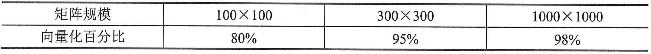 当解n阶线性代数方程组时,n越大,向量化程度越高。其关系如下表所示。