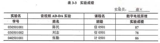 3.由实验员给出每个学生每次实验的成绩,包括:实验名,学号,姓名,班级,实验成绩等信息。实验成绩如表3-3所示。